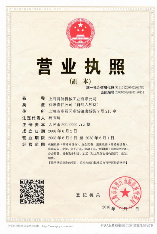 當前位置:首頁 >> 走進博儲 >> 博儲榮譽資質 >> 博儲營業執照